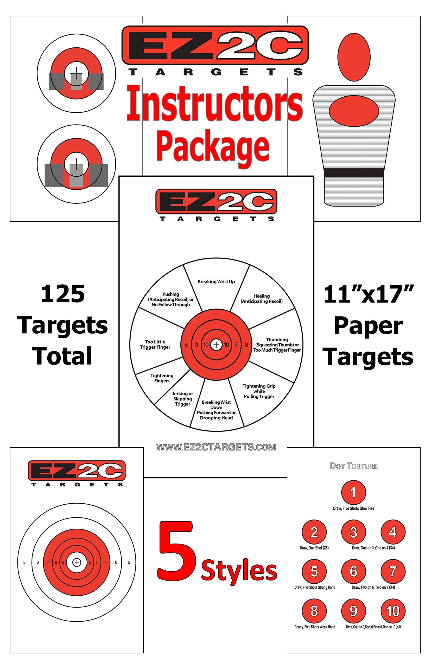 125 EZ2C Targets Instructors Favorites 5 Styles Paper Targets Bundle 11"x17" USA Made