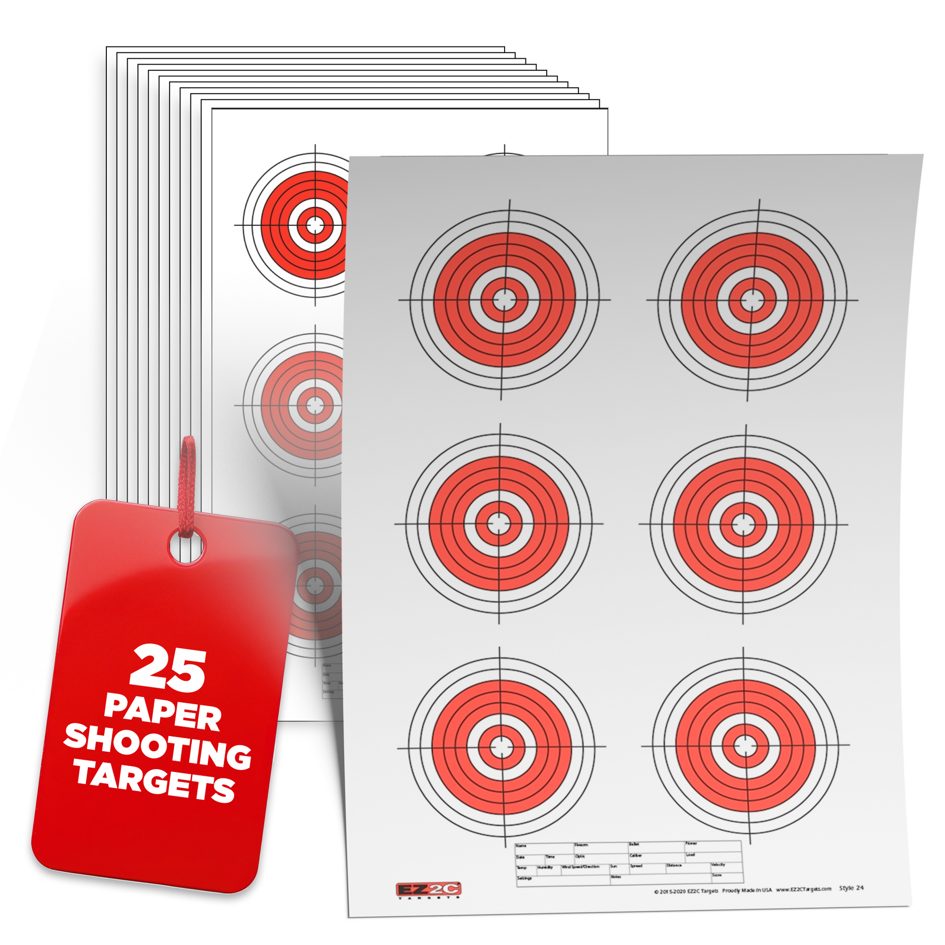 - TEAR-OFF GLUED EDGE PACK - Each style is packed on a tear-off GLUED edge pack for ease of use and best storage. EZ2C Targets are shrink-wrapped in a glued pad of 25. Targets stay together in your range bag. Simply peel a target off when you are ready to go!!
