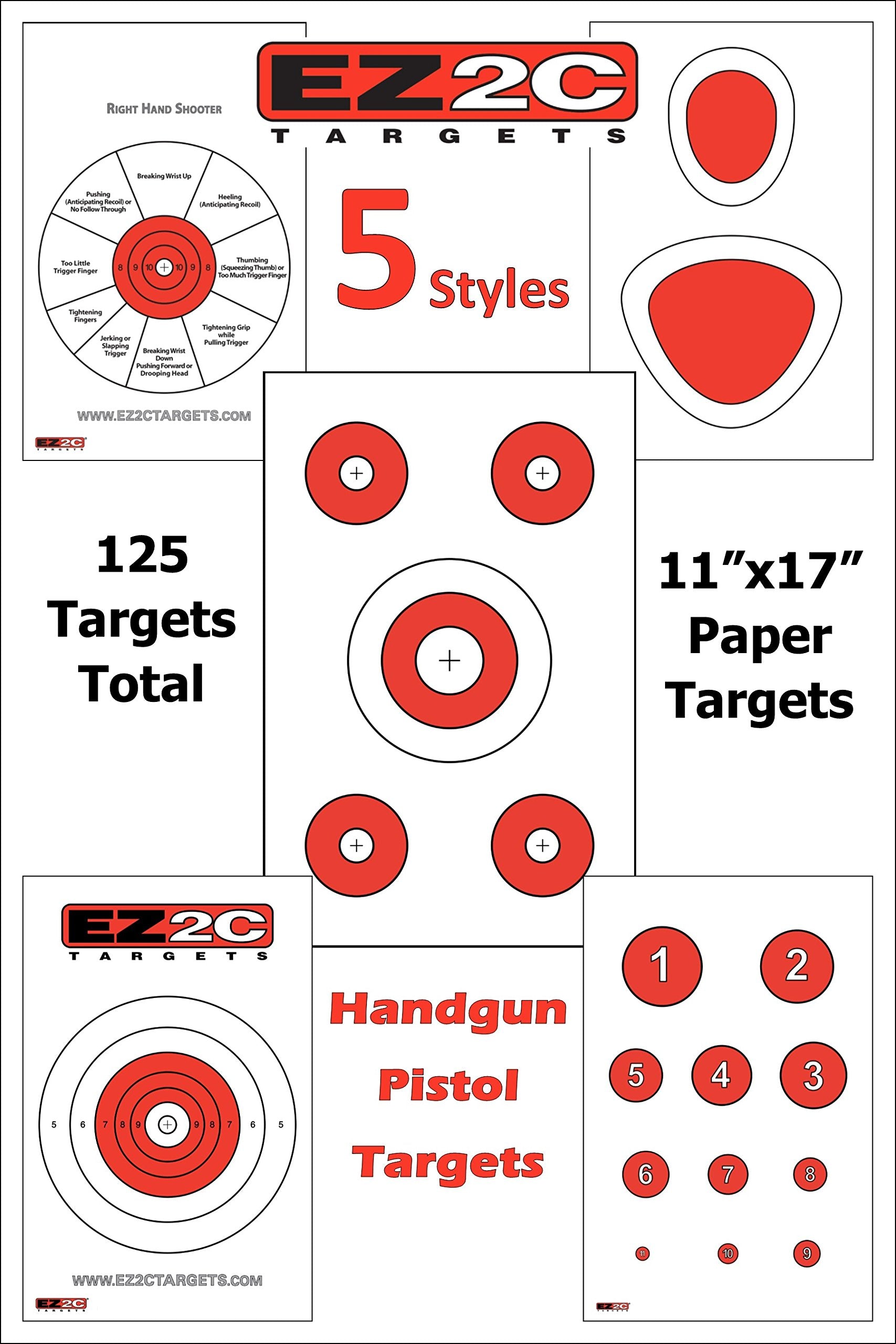125 EZ2C Targets Favorites 5 Handgun Styles Paper Targets Bundle 11"x17" USA Made