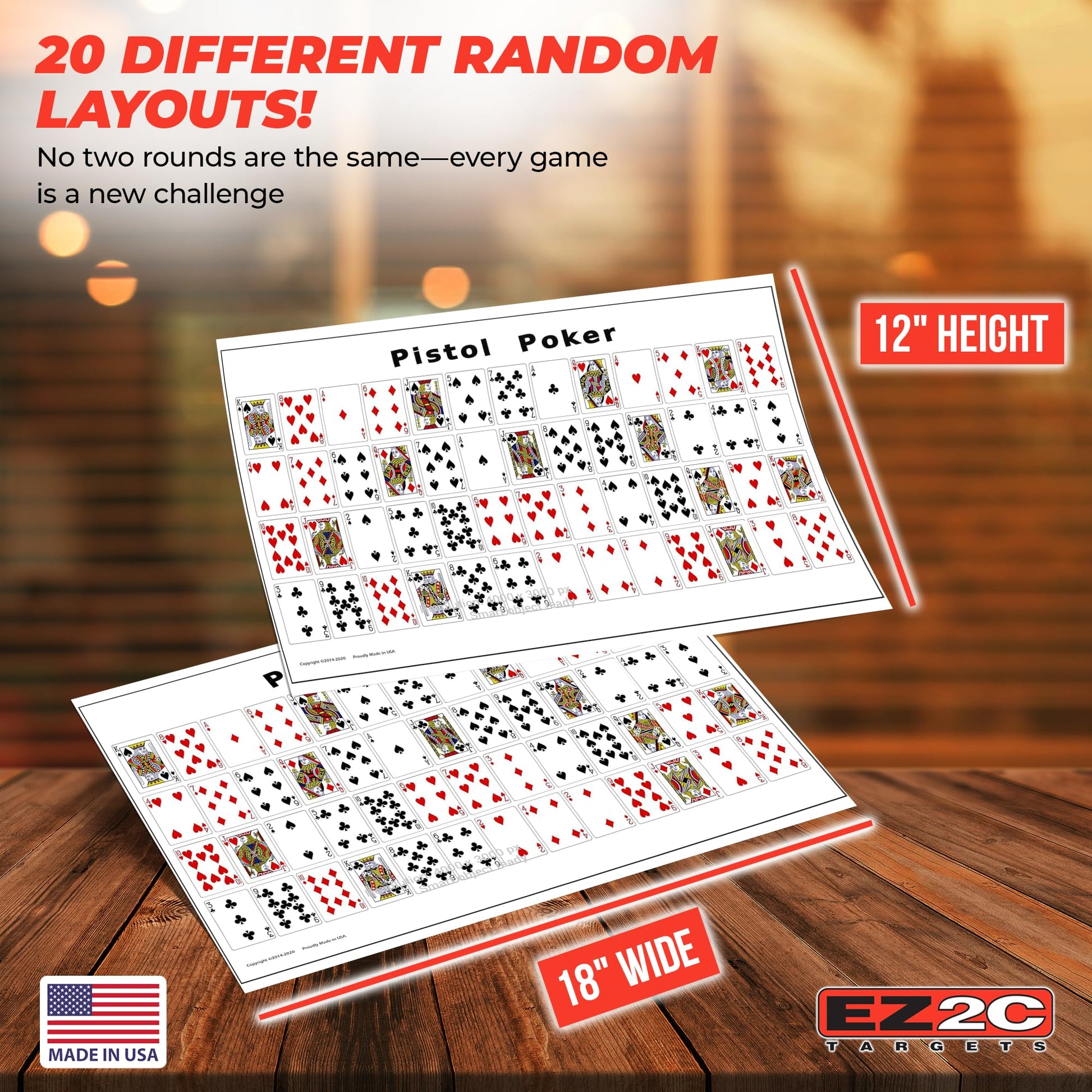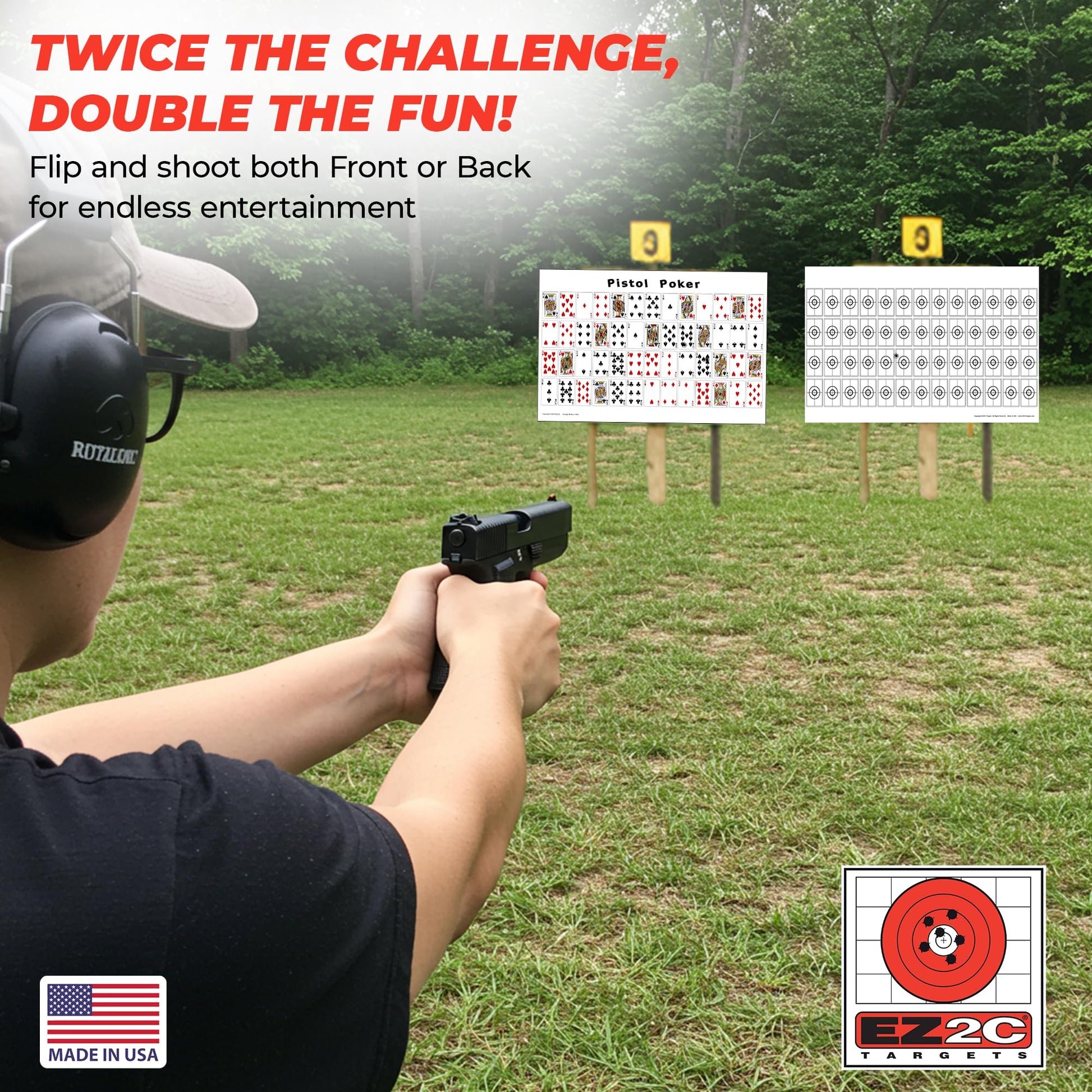- Play Pistol Poker and Bullesye with Your Friends at the Shooting Range Targets. You Can Shoot Either Side of the Sheet to Play Open or Blind. There are 20 Different Arrangements of Playing Cards.