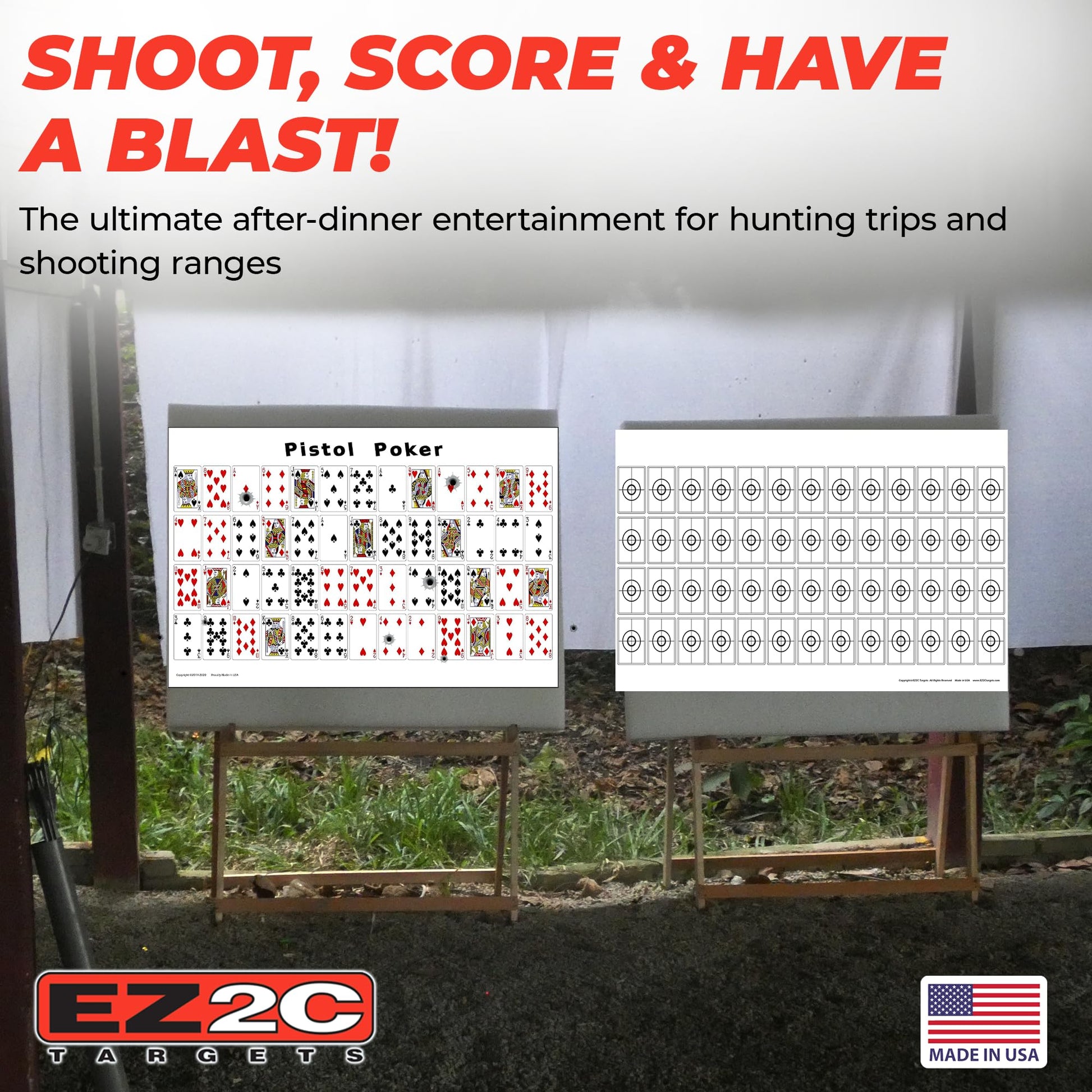 20 EZ2C Pistol Poker Paper targets for shooting. sheets of 52 random sorted playing cards 12"x18" (20 pack) USA MADE