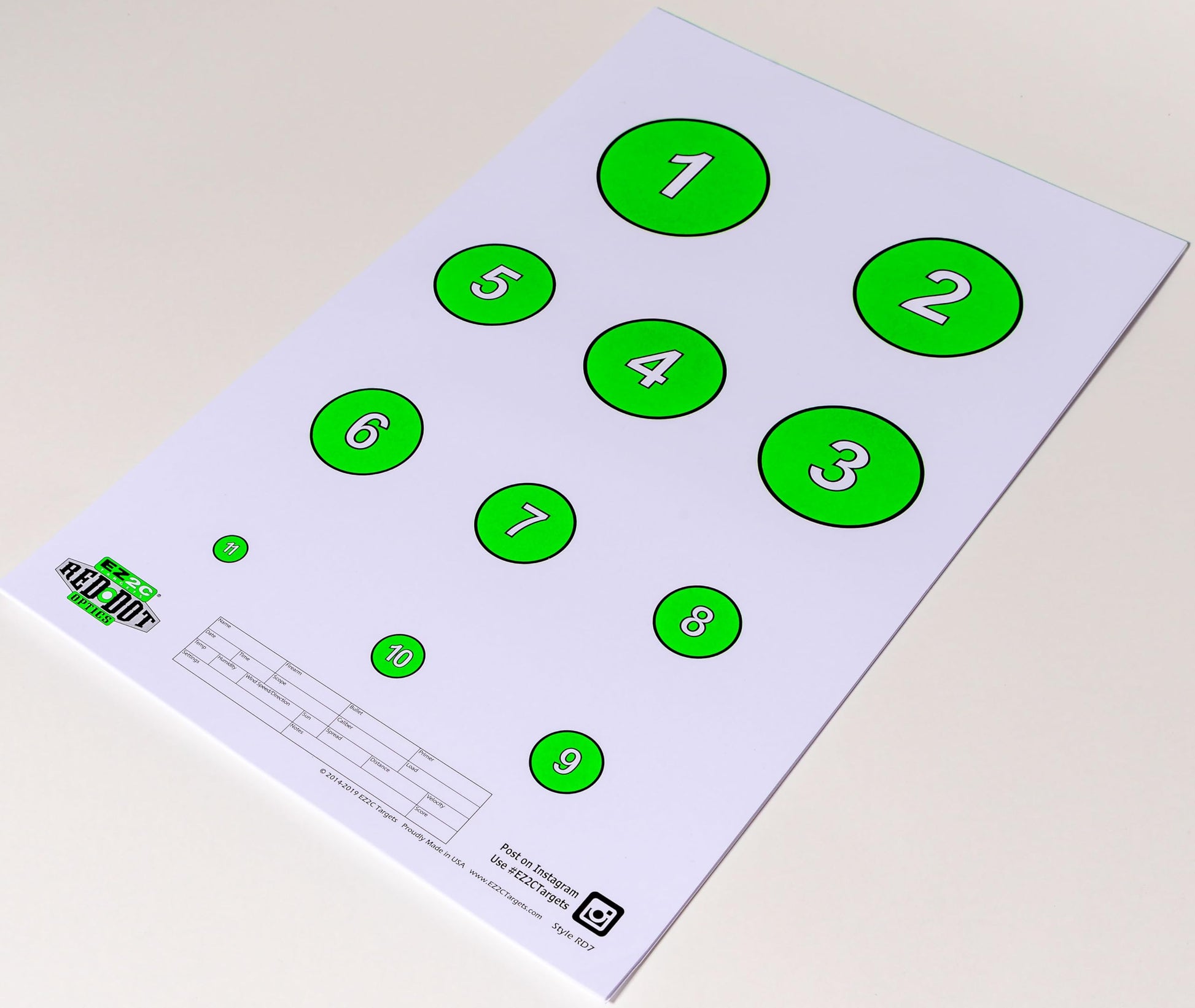 - These gun targets have eleven bright contrast red circles numbered 1 through 11, with circles reducing as the number increases. Diameter of the circle one is 3" and as the number increases the Circles reduces by 1/4"