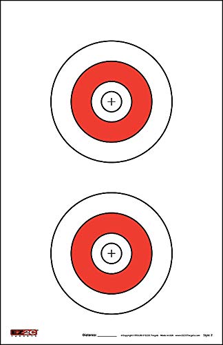 These classic paper targets have two 6"-4"-2"-1" bullseye stacked vertically. Aim for the 4" EZ2C Red ring. Targets are on 11" x 17" High-Quality Bright White Paper. They are Conveniently Packaged with 25 Paper Targets per Pad.