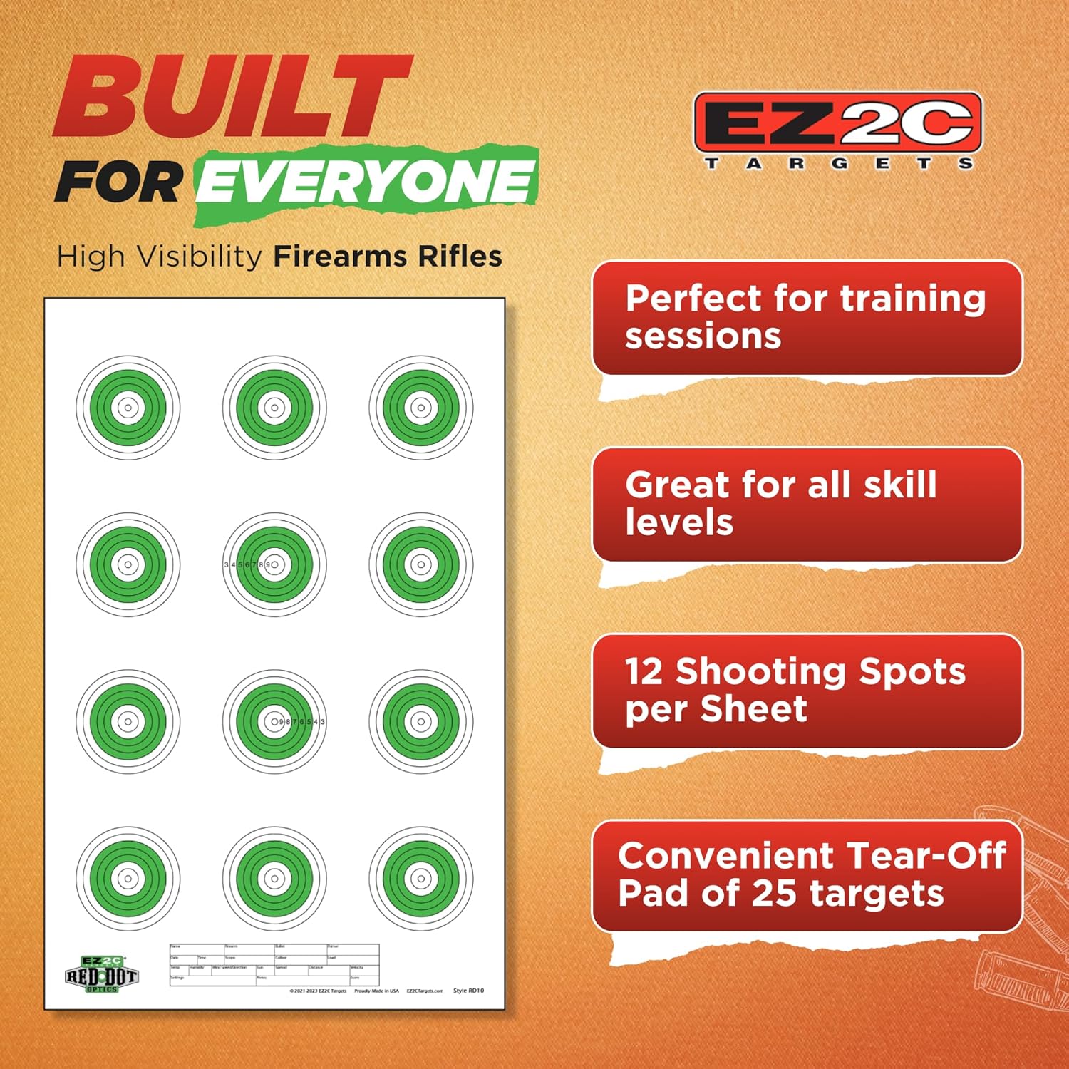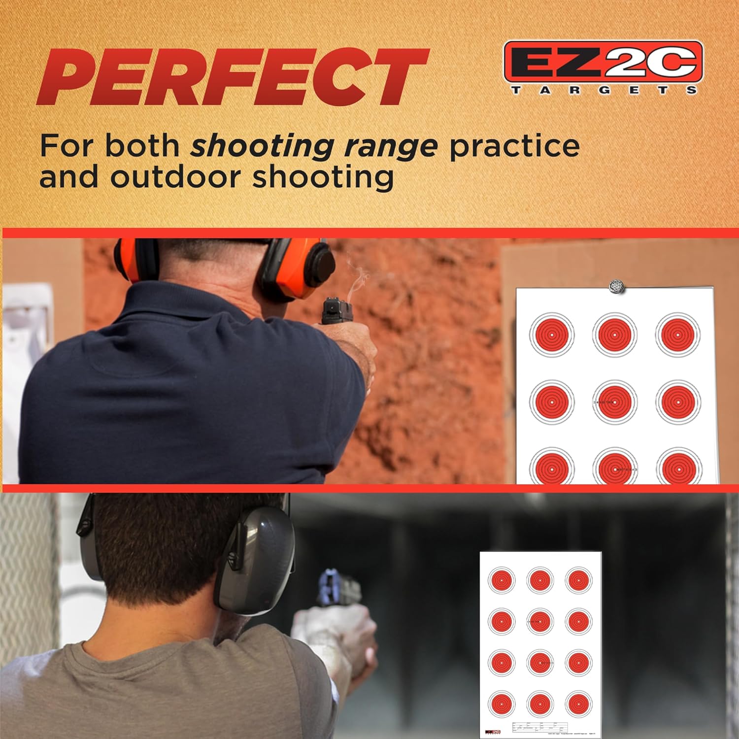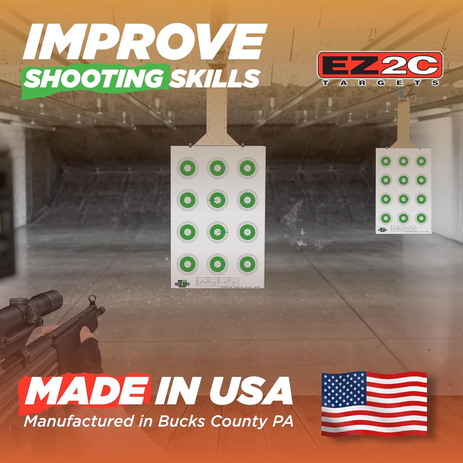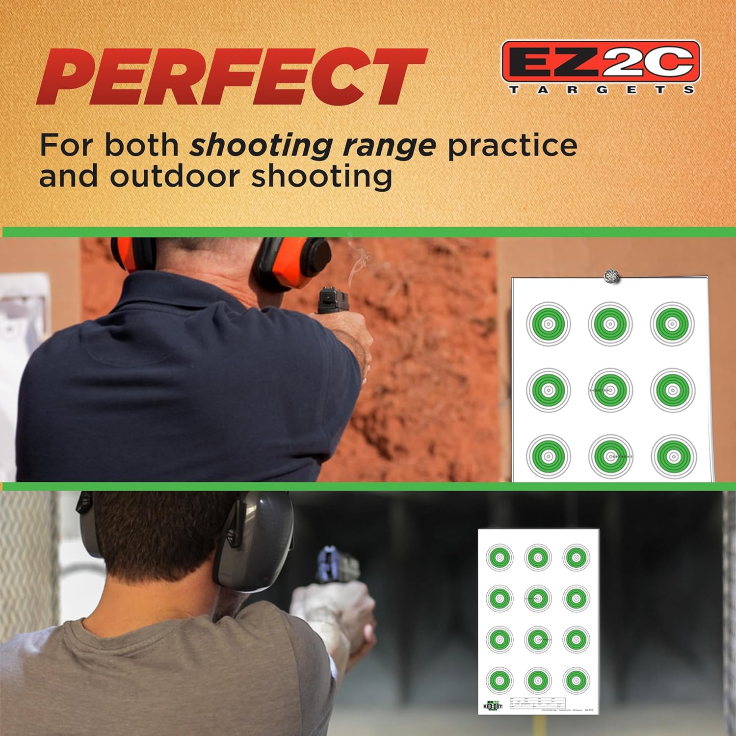 - HIGH VISIBILITY: EZ2C fluorescent ink on bright white paper. High contrast between your sights and the target. Your sights will not blend in with the target since it's green/red and not black- like other targets.