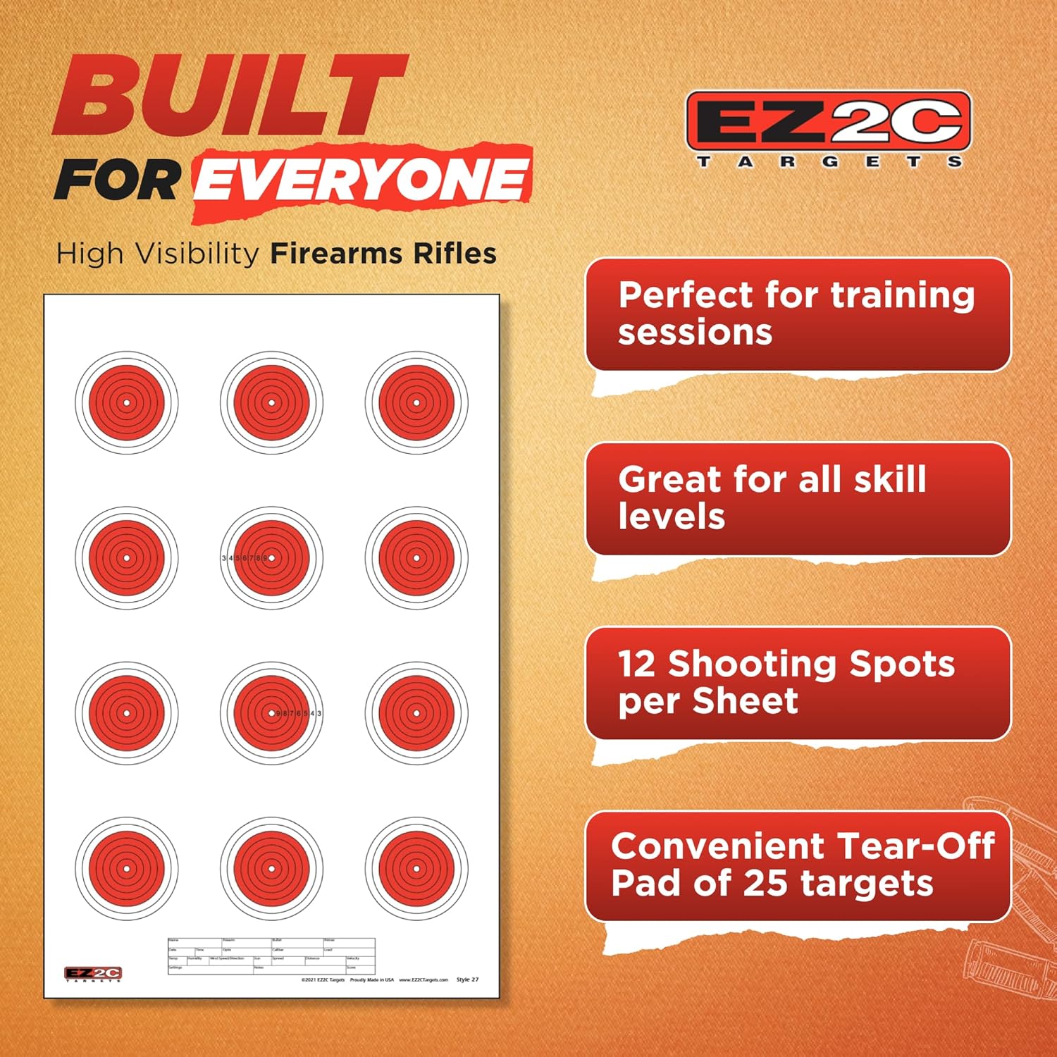25 EZ2C Targets Style 27/RD10: Small-bore 50ft Paper Shooting Target 11"x17" USA MADE Pad of 25